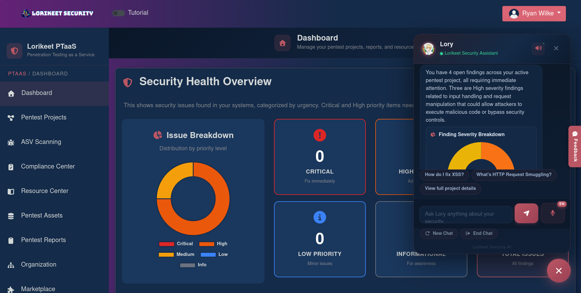 We’ve found the live portal and Lory (the AI assistant trained on ~2,000 vulnerability entries) eliminate many back-and-forths between engineering, security, and compliance teams. Teams can track remediation live, prioritize fixes by business impact, and avoid report-based churn from vague findings. -